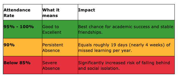 Every day at school counts. The evidence is clear – even a few days of missed school can have a significant impact on a child's education and future prospects.