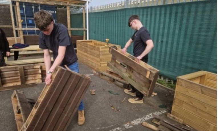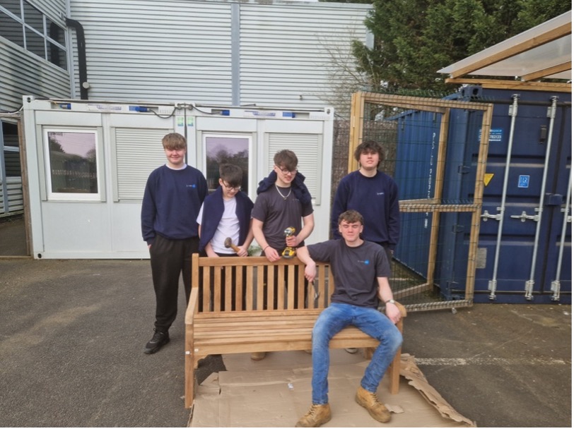 Left to right: Alfie, Mykee, Regan, Cameron, and George (seated). Along with Taylor (not pictured), they constructed three benches and a picnic bench during their lesson, all for the outside area at In Toto Peterborough